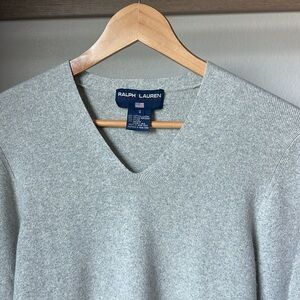 Ralph Lauren sweater, Polo Sport sweater, Ralph Lauren small, gray angora sweater, vintage Ralph Lauren women’s sweater, Ralph Lauren V-neck, Polo Sport Hong Kong sweater, designer sweaters, minimalist sweater, classic knitwear, angora rabbit hair, made in Hong Kong