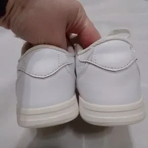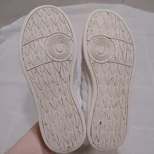 see photos, slight discoloring on sole, shoe has been scrubbed as clean as I could get them.
