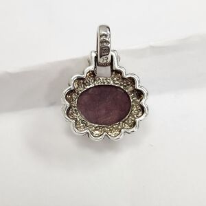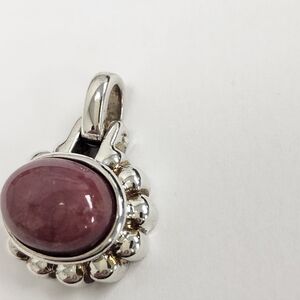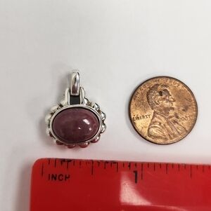 Excellent condition. Oval polished rhodonite stone set in silver, simple classic design. Marked Hong Kong, makers hallmark and stamped 925.