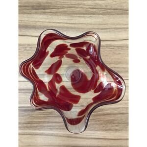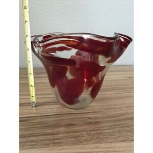 Red Zorza? Hand Blown Art Glass Handkerchief Vase Centerpiece Catch All