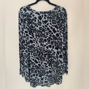 Zenana Leopard Print Long Sleeve V-Neck Tunic Top Women’s Size XL Gray Black
