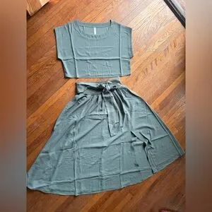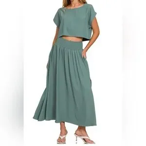 NWOT Zenana Heavy Woven Span Crop Tee & Skirt Set in Teal Size Small
