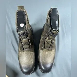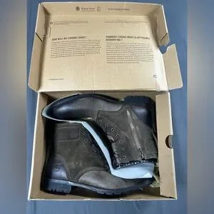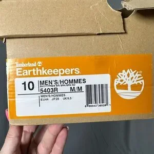 Timberland Earthkeepers City Premium 6-inch boots here. These are the brown leather ones, size 10. They're part of the eco-friendly line so they use recycled materials and stuff. Box is a bit beat up as you can see but the boots themselves are solid and brand new never worn. Really good quality leather on these, way better than the standard ones.