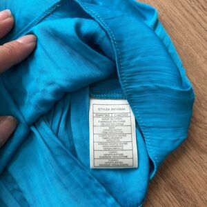 This Betsey Johnson maxi dress features a dreamy teal blue hue with delicate floral trim along the bust and empire waistline. The flowy silhouette and lightweight fabric make it perfect for weddings, garden parties, brunch, or summer events.