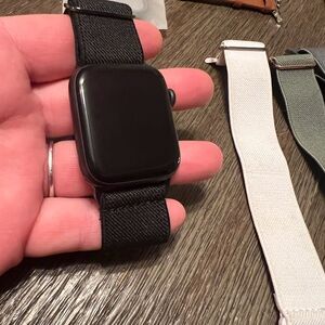 Apple Watch Series 6 44mm aluminum case and accessories. Watch has some minor scratches (pictured). Works perfectly and is ready to pair to new device. Comes with brand new screen protector that snaps onto the face.