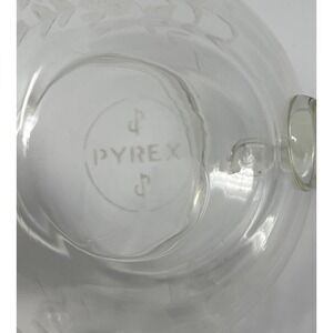 This vintage Pyrex tea pot is a beautiful addition to any mid-century modern collection. The clear glass etched with delicate flower leaves adds a touch of elegance to any tea time. Made in the United States, this piece is a true vintage find for any collector. Perfect for serving tea or as a decorative piece, this tea pot is a must-have for any lover of glassware.