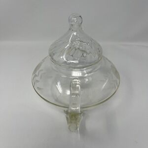 Vintage Clear Etched Glass Pyrex Tea Teapot Kettle Flower Leaves Etching
