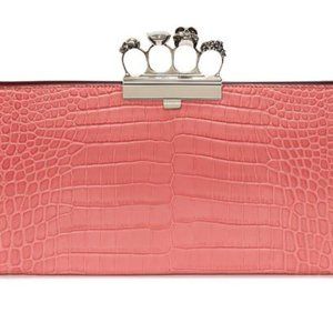 Alexander McQueen Skull Four-Ring Croc-Embossed Leather Clutch Pink