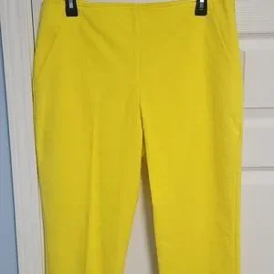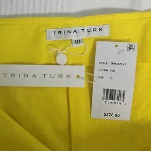Trina Turk Slim Leg Stretch Cropped Pant: Geo Jacquard Yellow: Size- 10