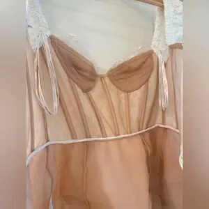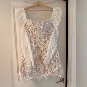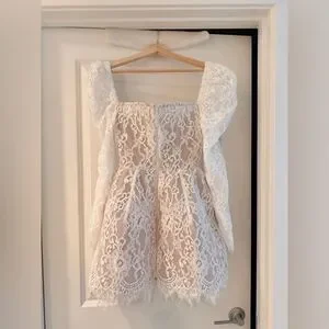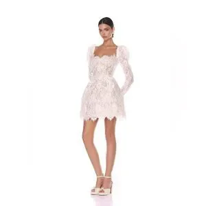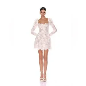 NWOT BRONX AND BANCO Colette White Lace Long Sleeve Mini Wedding Bridal Dress