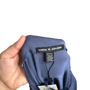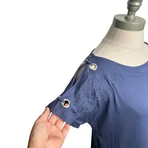 Cable & Gauge Blue Women's Short Sleeve Boat Neck Geometric Embroidered Top S