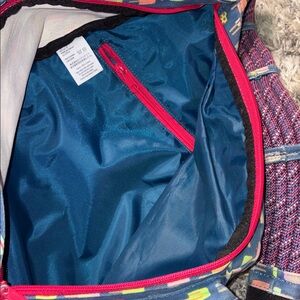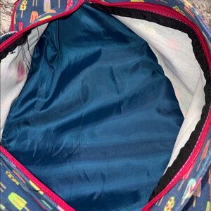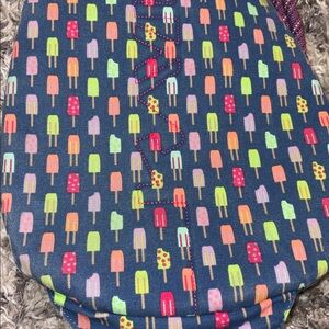 Kavu sling bag with playful popsicle pattern. Blue background with colorful accents. Comfortable adjustable strap. Has inside Stains.