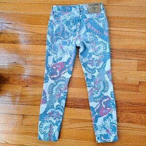 True Religion Girls Casey Jeans Size 7 Butterfly Print Graphic Skinny Denim Rare