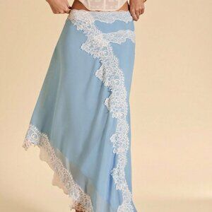 Baby Blue Elegant Women's Lace Trim Asymmetric Hem Split Chiffon Skirt