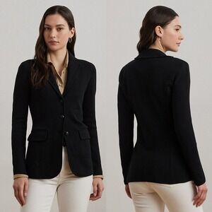 Lauren Ralph Lauren Black Knit Sweater Blazer Jacket in Women's Size XS. Made in China. Double button closure. Notched lapel. Front flap pockets. 100% cotton. Hand wash. Great pre-owned condition. Please review all photos.
