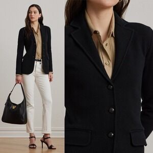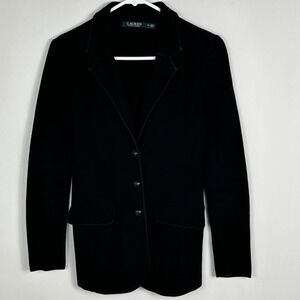 Ralph Lauren Black Knit SweaterBlazer Womens Size XS Double Button Professional