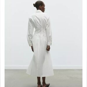 This elegant white button-down maxi dress offers a sophisticated look for any occasion. The classic design features a flattering silhouette and stylish button details. Perfect for both casual and formal events.