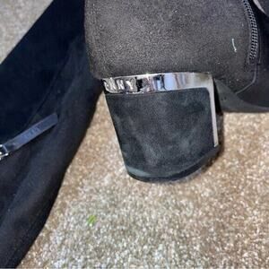 DKNY Cora Women's black Suede Knee High Riding Boots Metallic Heel SZ 7 metallic