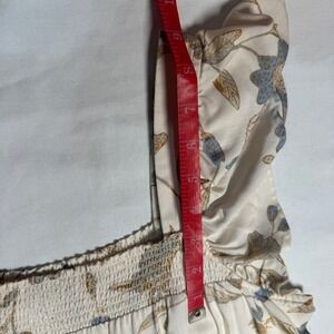 Wonderly Floral Smocked Square Neck Midi Dress Cream Blue Tan Flutter Sleeve M