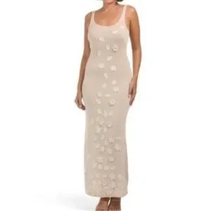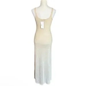 Caroline Constas crochet maxi tank dress is nude color with gold shimmer absolutely beautiful