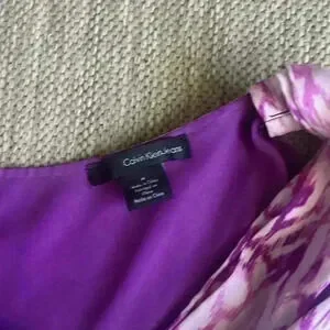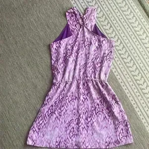Calvin Klein halter dress size medium purple. 100% polyester fully lined. Elasticize waist 30 inches without being stretched.