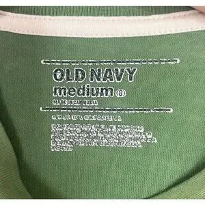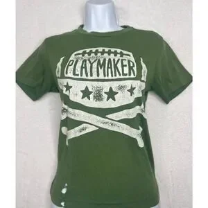 VNTG Old Navy "Playmaker" Green Distressed Baby Tee sz M y2k Rachel Green 90s