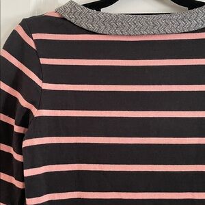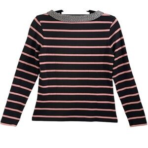 Boden Women’s Longsleeve Brown/Pink Stripe Peter Pan Collar Knit Top 8 EUC