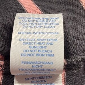 * Machine wash delicate, Flat lay to dry, Cool iron