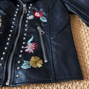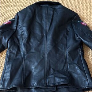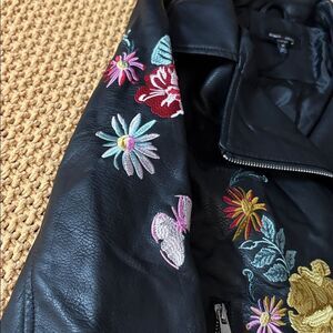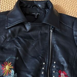 Romeo & Juliet Couture Black Vegan Leather Jacket with Floral Embroidery Size M