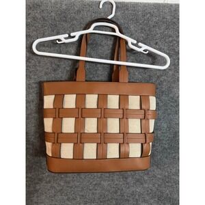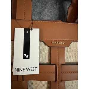 NWT Nine West Sutton Place Tote Bag Caramel Canvas Woven Cage WGN111623