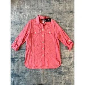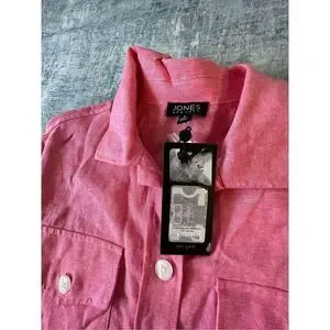 NWT! Jones New York Pink Linen Blend Shacket Jacket With Rolled Tab Small