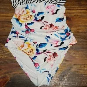 Cupshe Floral and Stripes One Piece Swimsuit Size Medium