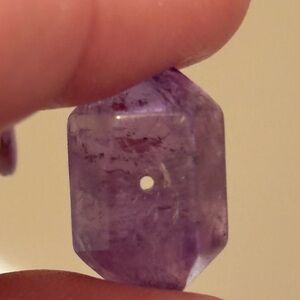 Beautiful amethyst gemstone pendant. There isn’t any metal or pendant hook. The hole for pendant is through the gemstone itself and will take a very thin chain or material. Comes from a smoke free home or a home with pets.