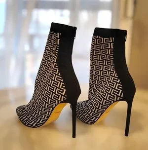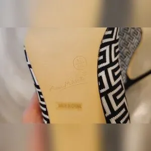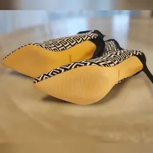 Stylish Anna Mitchell ankle boots with a striking geometric pattern. Features a black and white design.