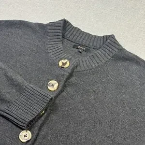 Features: Button Front, Collarless, Ribbed Trim, Tortoiseshell Buttons, Relaxed Fit.