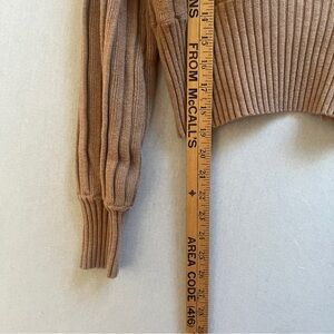 Elevate your knitwear collection with this gorgeous Wilfred Plunge Front Cardigan from Aritzia. This piece features a flattering deep V-neckline, a three-button front closure, and a dramatic wide-ribbed hem that cinches the waist for a beautiful silhouette. The balloon-style sleeves add a touch of effortless chic to any outfit.