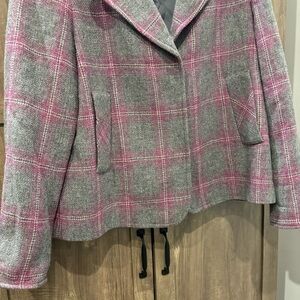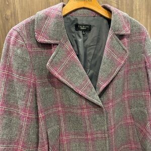 Talbots 12 Jacket Gray Pink Plaid Windowpane Wool Tweed Blazer Snap Front