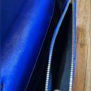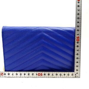Authentic SAINT LAURENT Royal Blue Chevron Matelasse Grain De Poudre Monogram Envelope Chain 2way Clutch / Wallet on Chain (WOC)