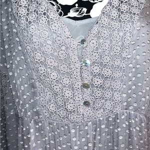 Daniel Rainn Silk Swiss Dot Crochet Bohemian Tunic Blouse