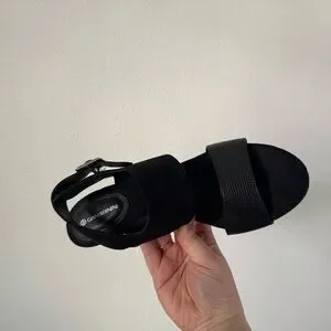 • features These Giani Bernini Aikko heels in Size 9M feature a stylish black design with a chunky platform heel and secure buckle ankle strap. Offering a modern and versatile look, they are perfect for dressy occasions or evenings out. Experience comfortable elegance with these like-new sophisticated shoes.