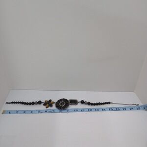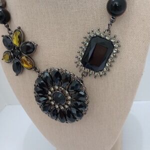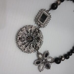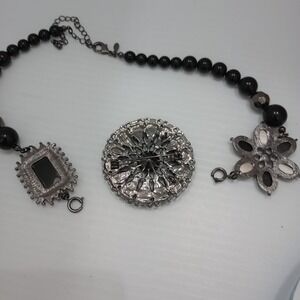 Premier Designs Black Beaded Floral Statement Necklace w/ Detachable Brooch