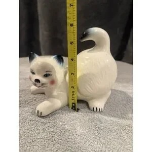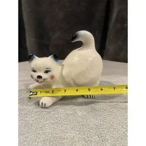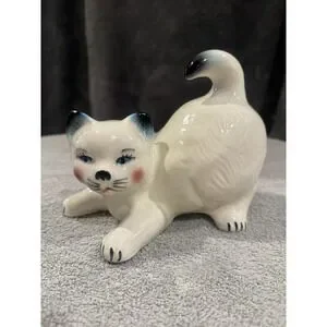 Vintage Ceramic Cat Kitty Stretching Collectible Mexico White Persian