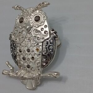 Disney Owl Brooch Rhinestone Silver Tone Crystal Pin Vtg Y2K Collectible Disney