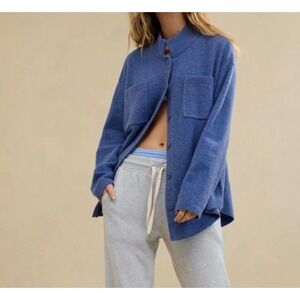 Aerie oversized, unreal button down cardigan in a marbled blue color. It is so comfy!