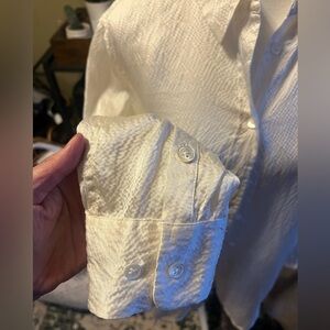 Lightly textured. Gorgeous. Needs a dry cleaning. A bit wrinkled but is just so pretty !