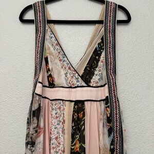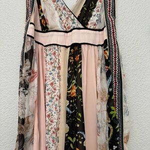 Embrace elegance with this stunning floral patchwork maxi dress. Featuring a blend of cream, pink, and brown hues, this dress is perfect for any occasion. The sleeveless design and flowing silhouette offer both comfort and style.