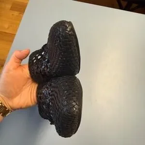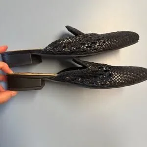 Sam Edelman Woven Black Leather Clara Mules Slip-On Flats Sz 8.5