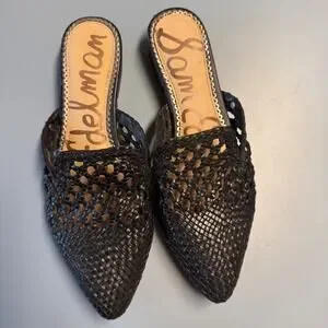Sam Edelman Woven Black Leather Clara Mules Slip-On Flats Sz 8.5. In great shape just some tiny marks on logo part etc. SEE PICS! LOTS OF LIFE LEFT!