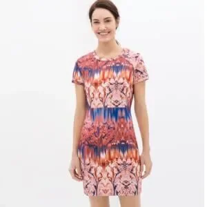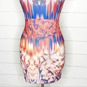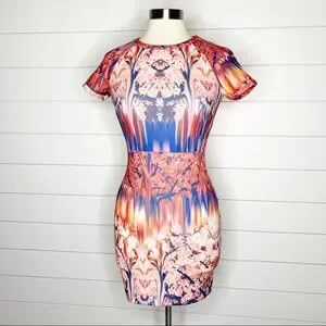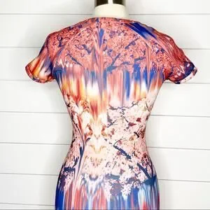 ZARA Collection Cherry Blossom Sheath Dress Pink Blue Size Small