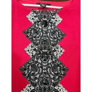 Y2K Style & Co Red Black Lace Sheer Sleeve Tunic Dress Medallion S